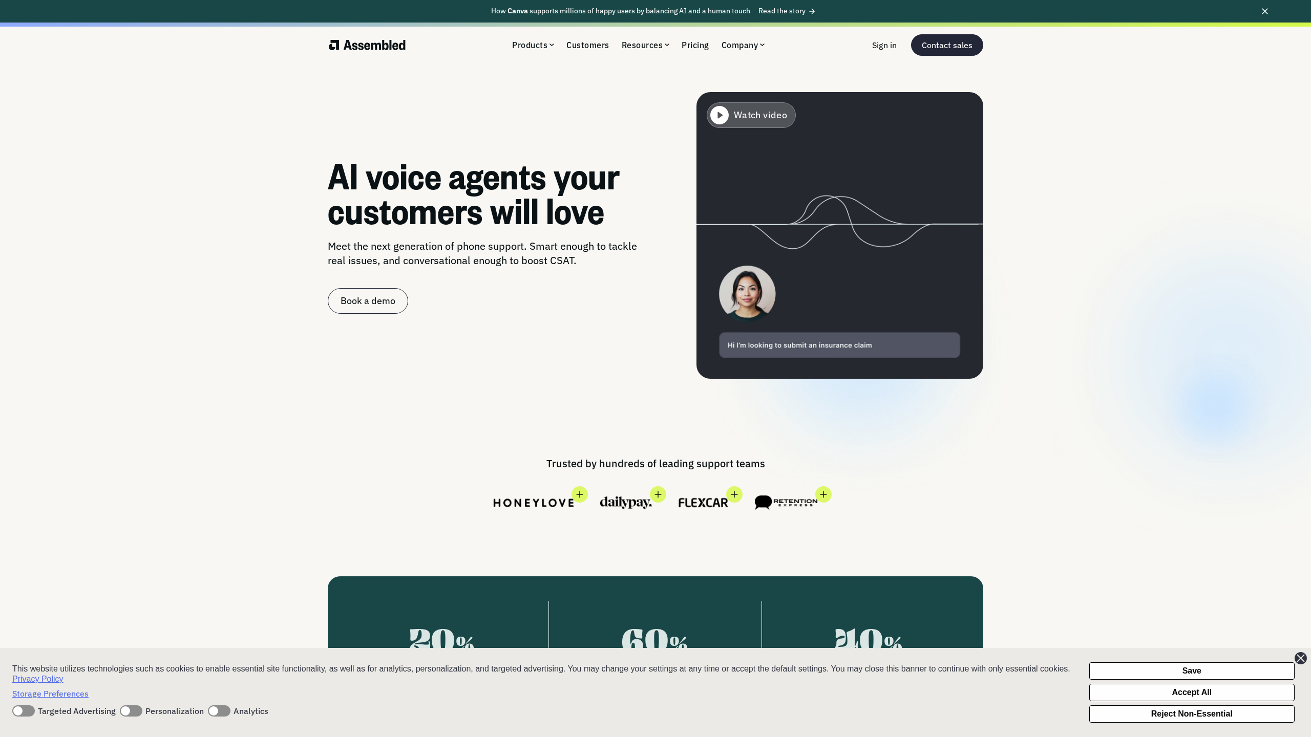 Assembled offers AI voice agents for customer support teams, described as the next generation of phone support. These agents are designed to be smart enough to tackle real issues and conversational enough to boost customer satisfaction (CSAT). They provide high-quality, personalized support that solves tickets, increases agent efficiency, and scales your team's capabilities.
