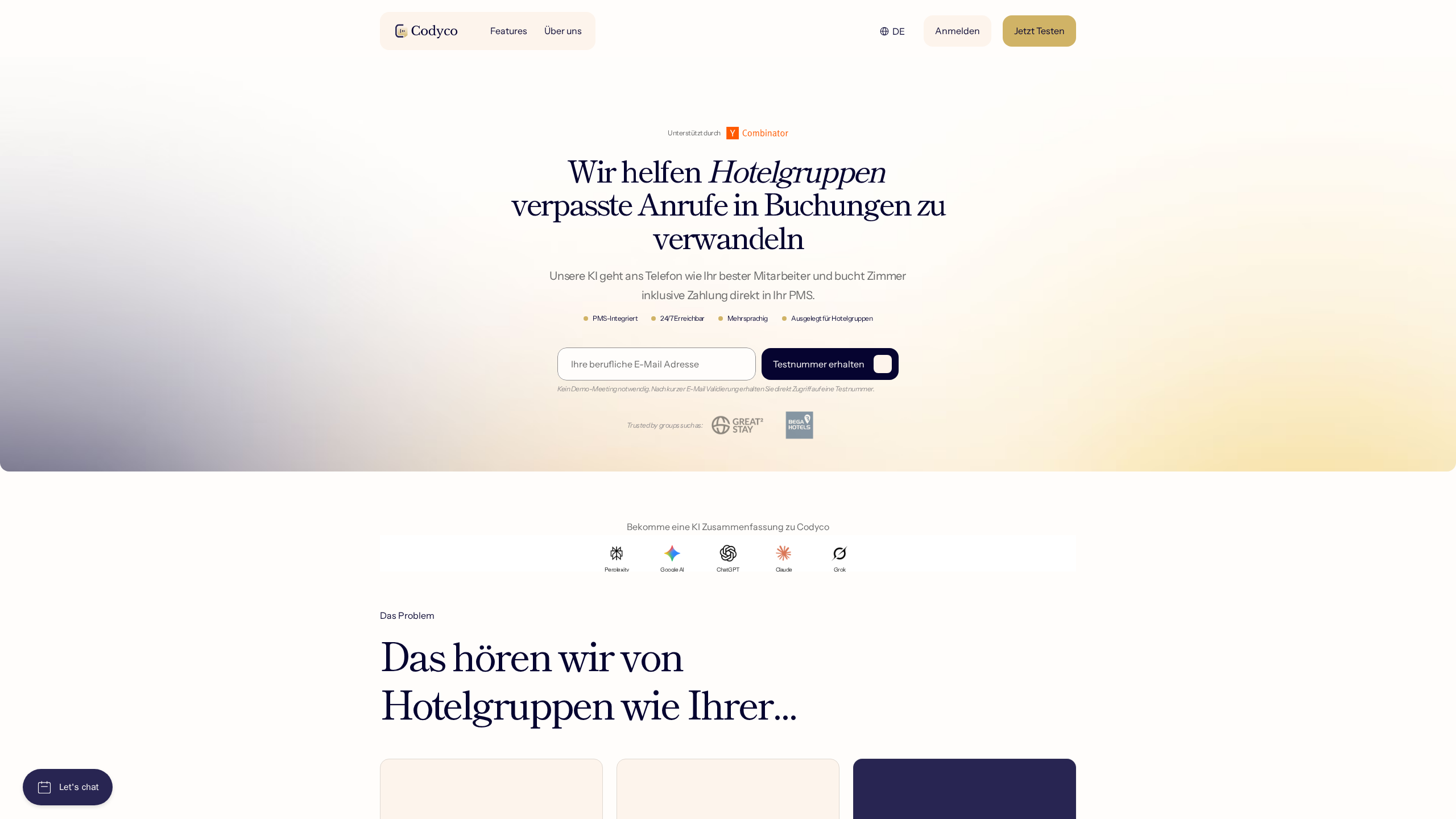 Codyco helps hotel groups convert missed calls into bookings using an AI that answers the phone like an employee. The system books rooms, processes payments, and writes the information directly into your Property Management System (PMS). It is designed to address issues like staff shortages, poor phone accessibility, and lost revenue from unanswered calls.
