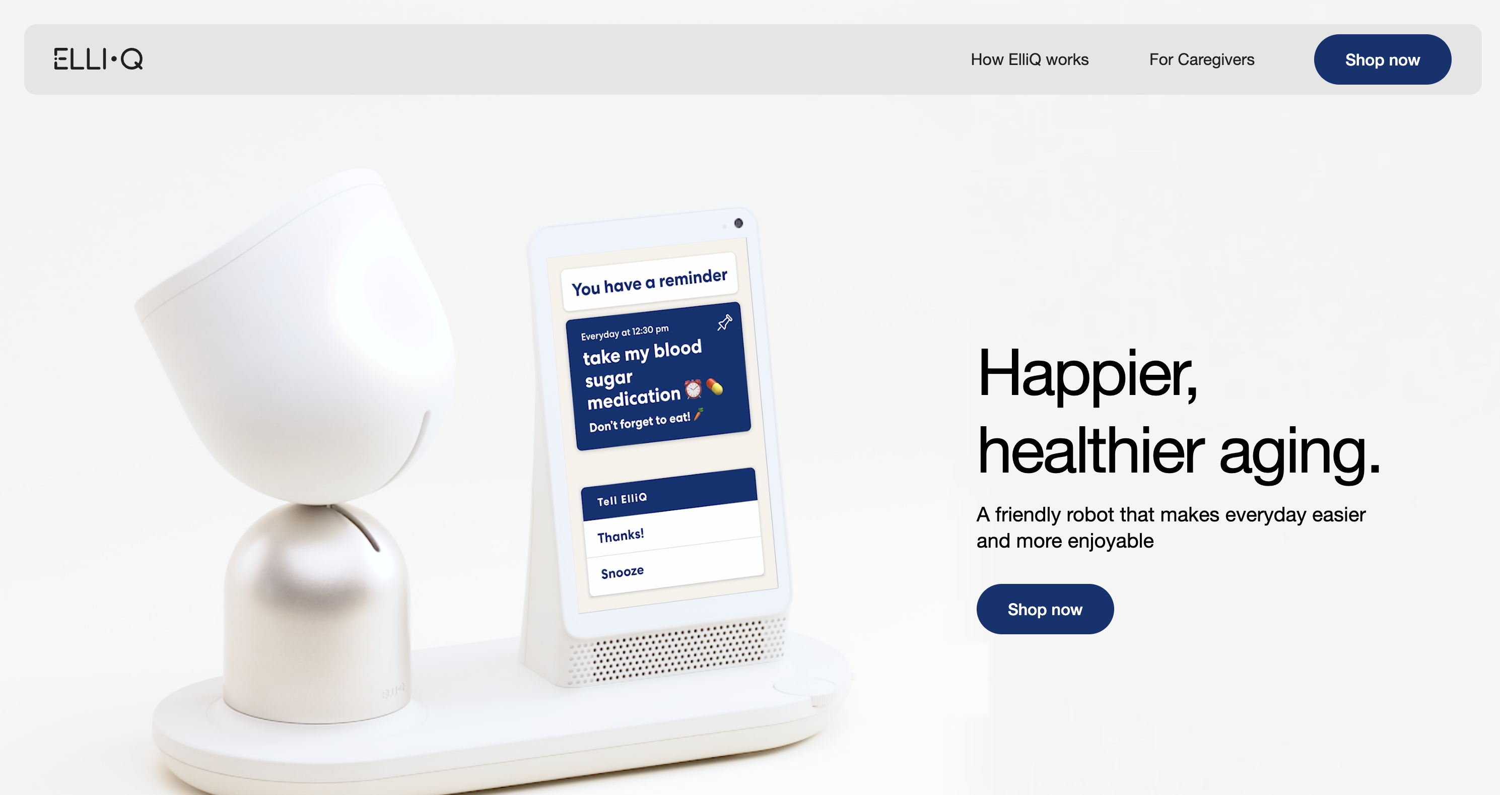 ElliQ empowers older adults to maintain their independence and wellbeing through proactive AI companionship, while offering caregivers peace of mind through continuous connection and insights.