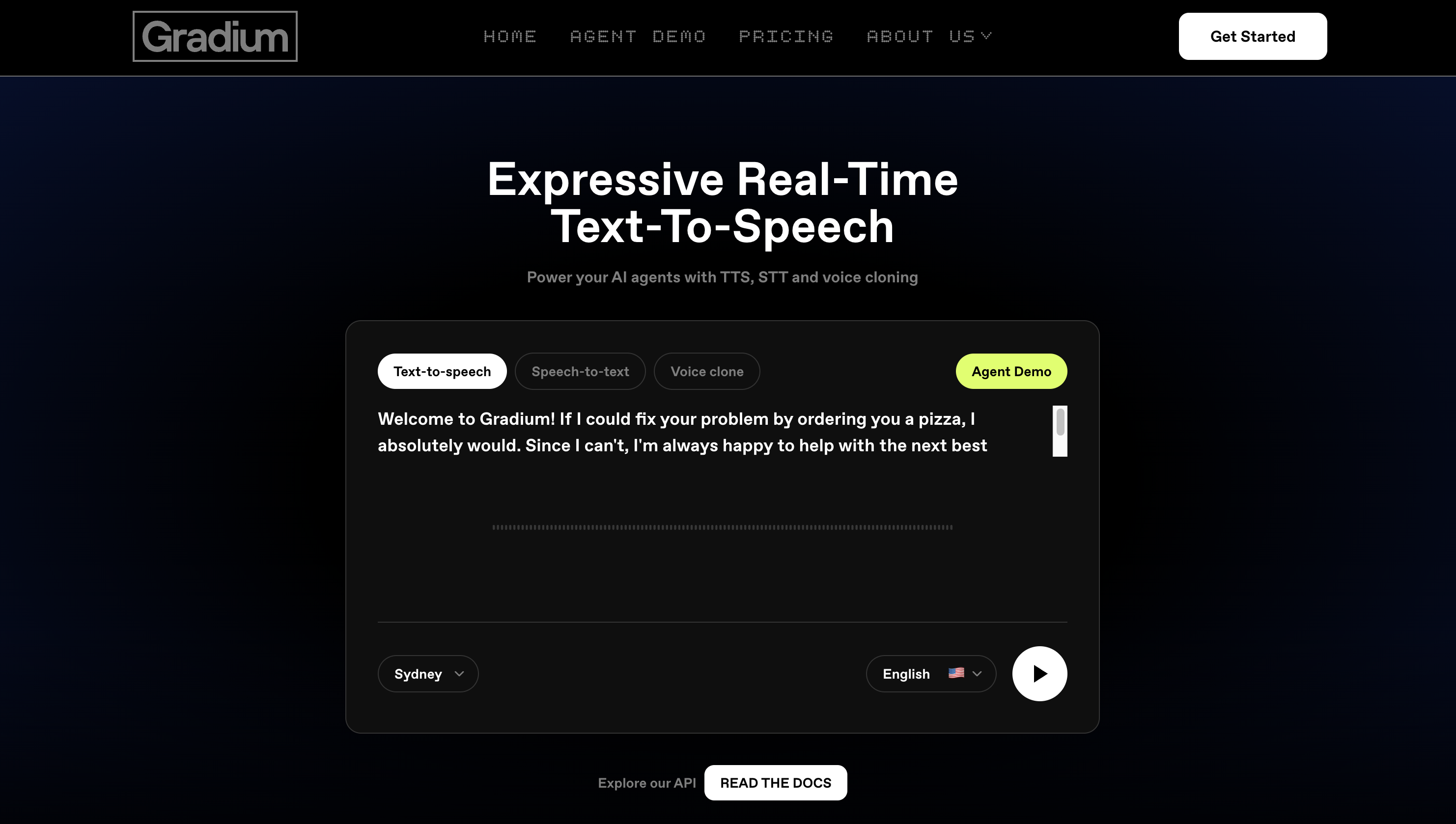 Gradium develops audio language models designed to deliver natural, expressive, and ultra-low latency voice interactions at scale. The platform provides a full suite of voice AI models, including text-to-speech, speech-to-text, and voice cloning, to power AI agents and perform various voice tasks.