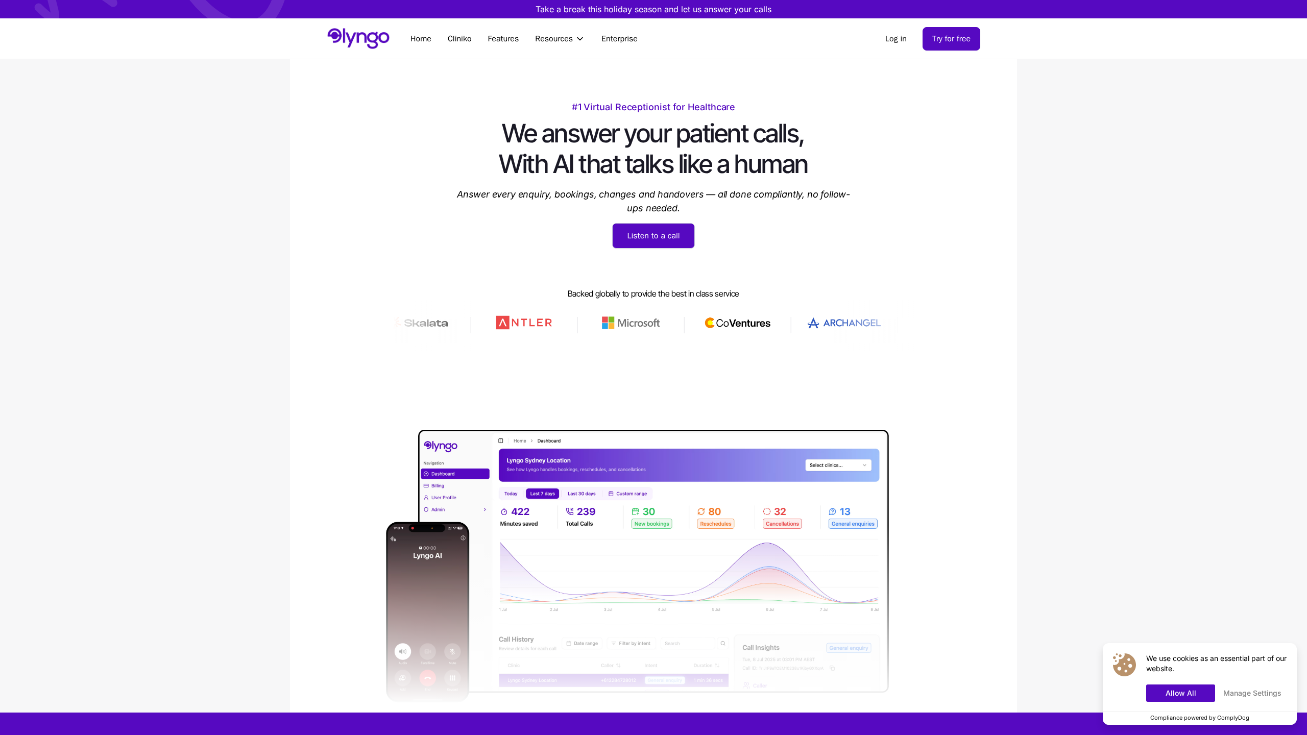 Lyngo empowers healthcare providers to never miss a patient call, enabling automated, 24/7 phone answering that integrates directly with practice management software. The result is improved patient experience, time savings for clinic staff, and enhanced operational efficiency—all delivered with robust compliance and security standards.