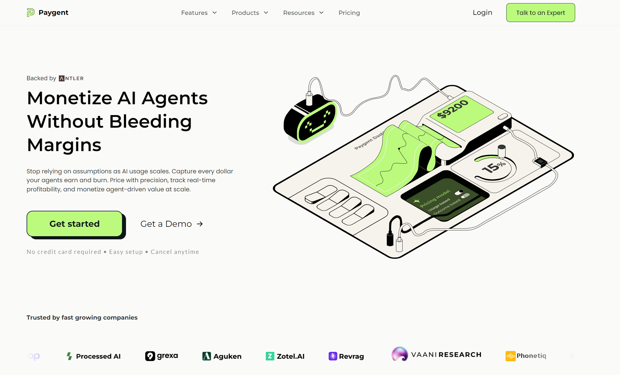 Paygent is an AI-powered platform built to enable creators, developers, and companies to monetize AI agents and monitor operational costs seamlessly. The platform provides automated systems for monetization, profit sharing, and real-time usage tracking, making it easier to manage multiple AI agent deployments in production or community settings.