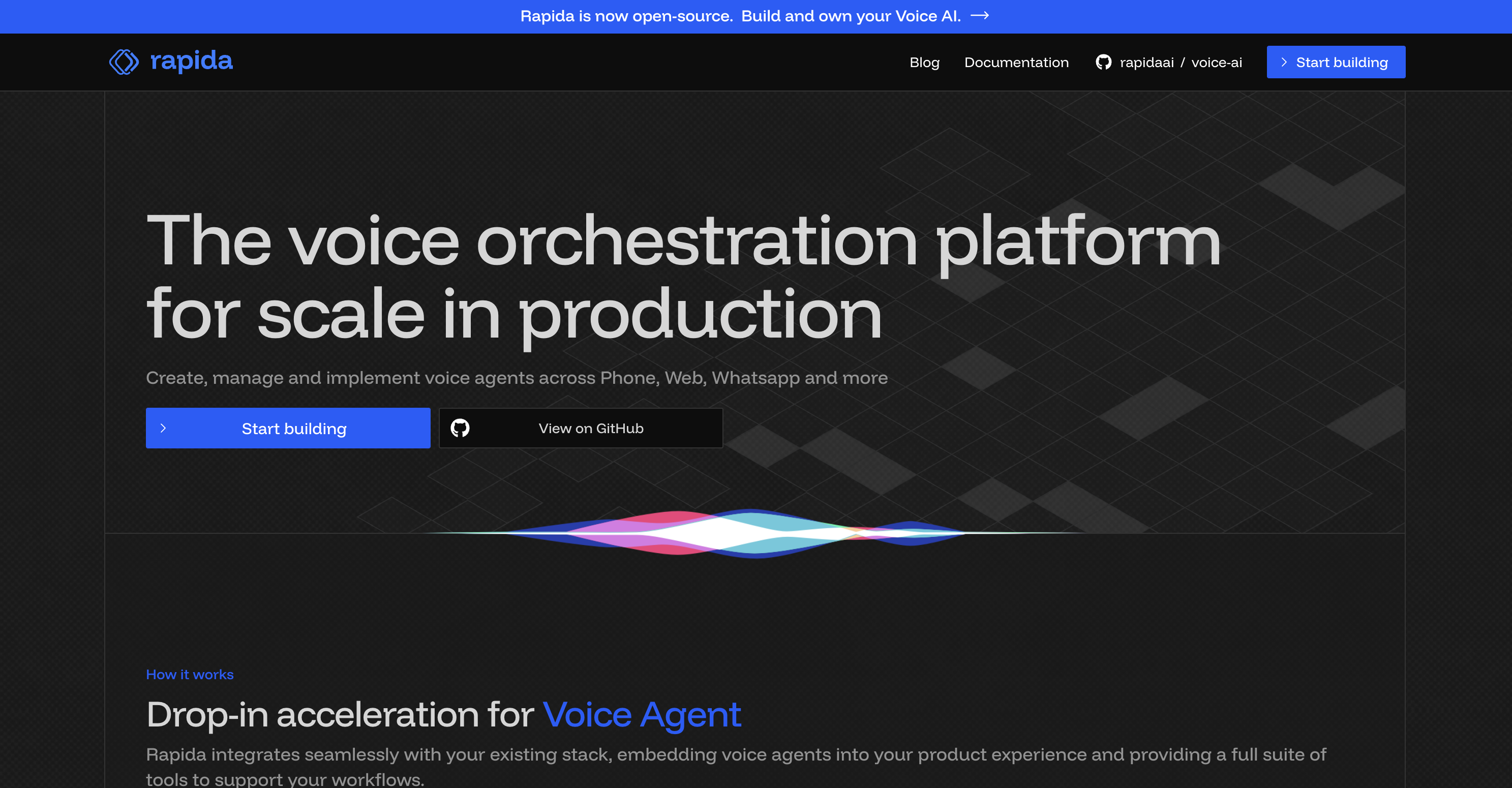 Rapida empowers organizations to build, manage, and scale innovative real-time voice AI solutions, enabling flexible integration and orchestration of voice-based interactions in any application or service.