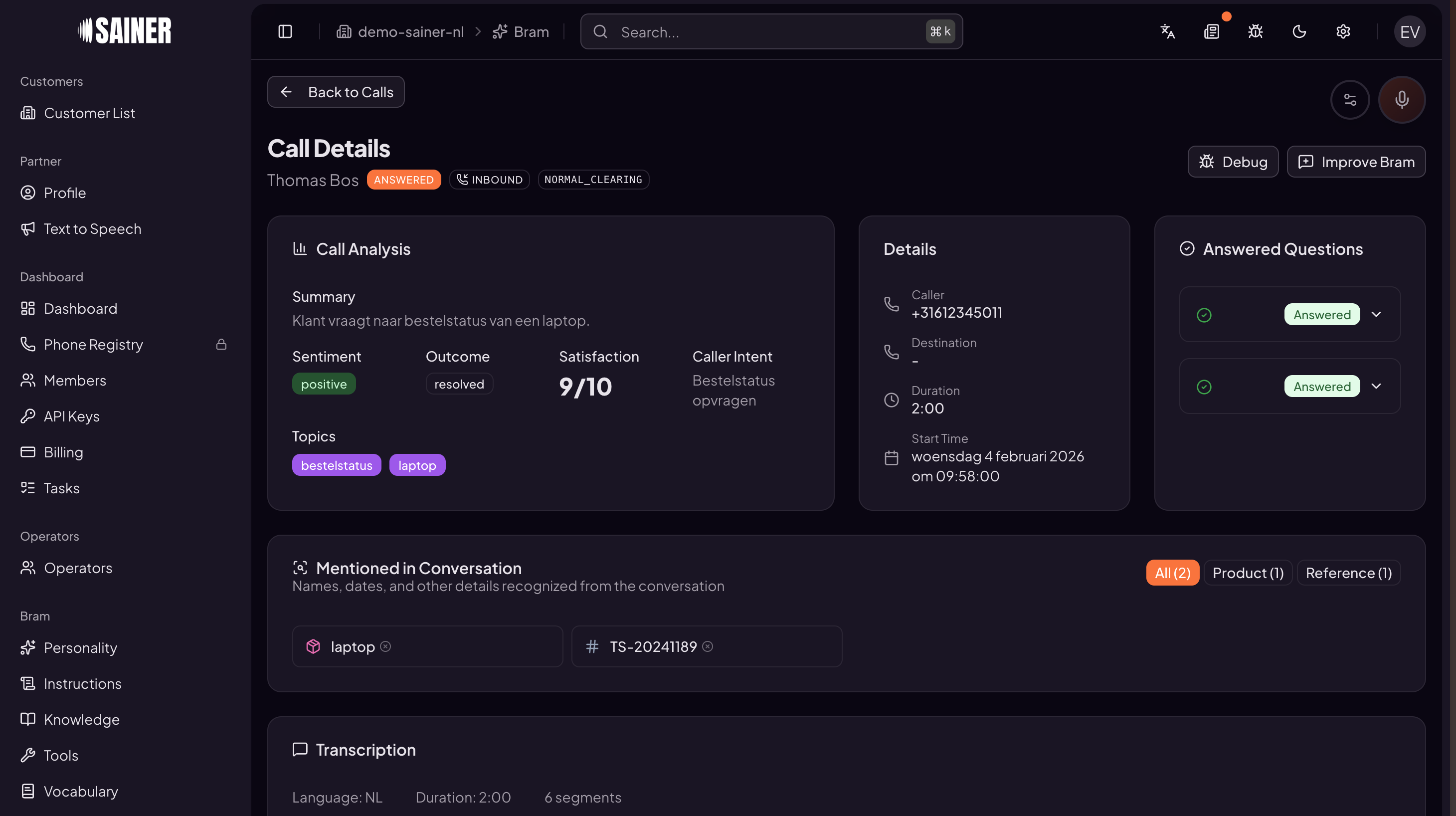 - 24/7 Availability: Sainer answers calls day and night, eliminating missed interactions and voicemails.