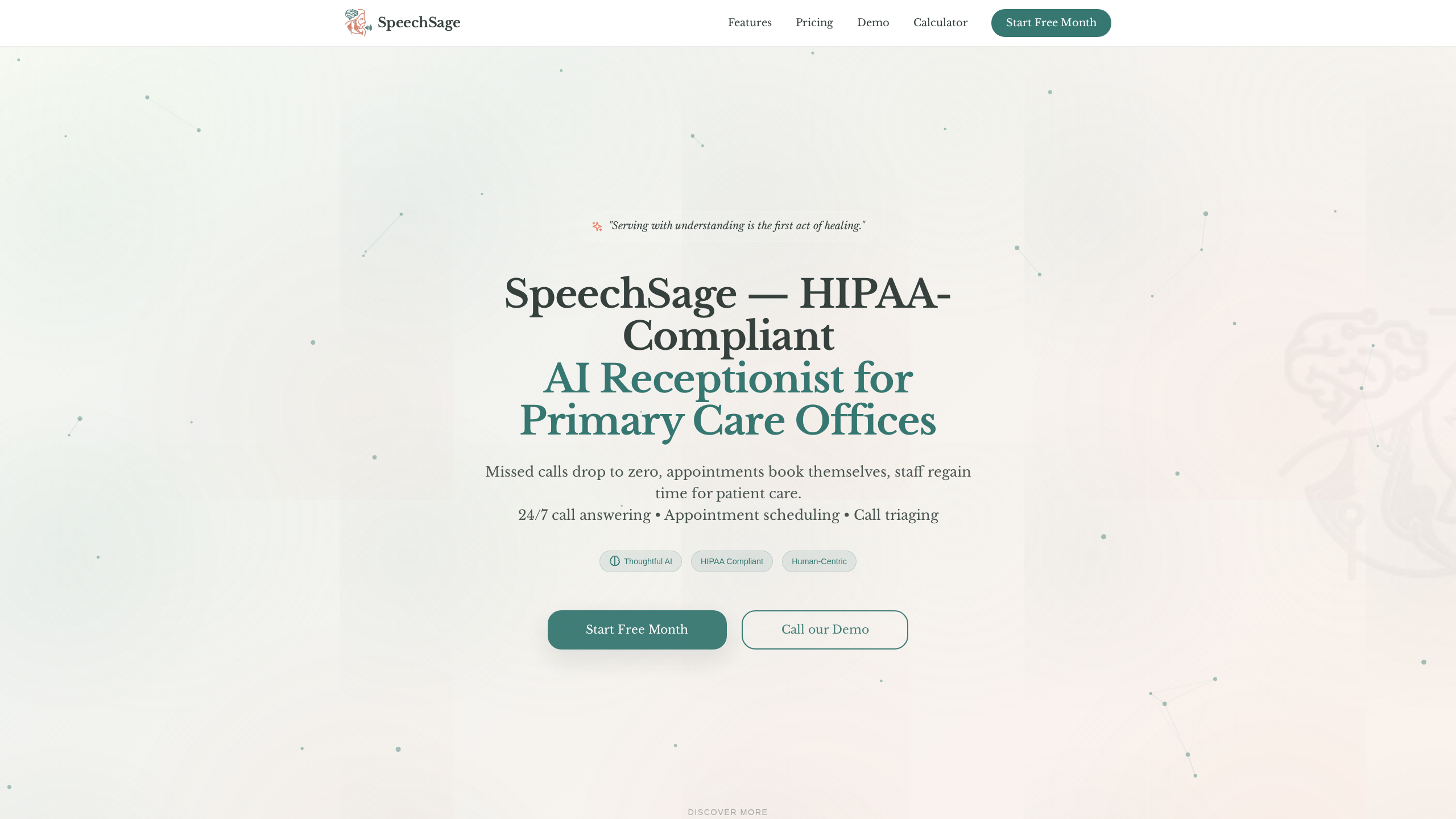 SpeechSage is a healthcare-focused communication platform that automates phone operations for medical practices and primary care offices. The system functions as an AI receptionist, managing incoming calls 24/7 to handle appointment booking, call routing, and general inquiries without human intervention. Designed with strict adherence to healthcare privacy standards, the software integrates with existing clinic workflows to manage patient interactions, reduce administrative call volume, and ensure continuous operational coverage outside of standard office hours.