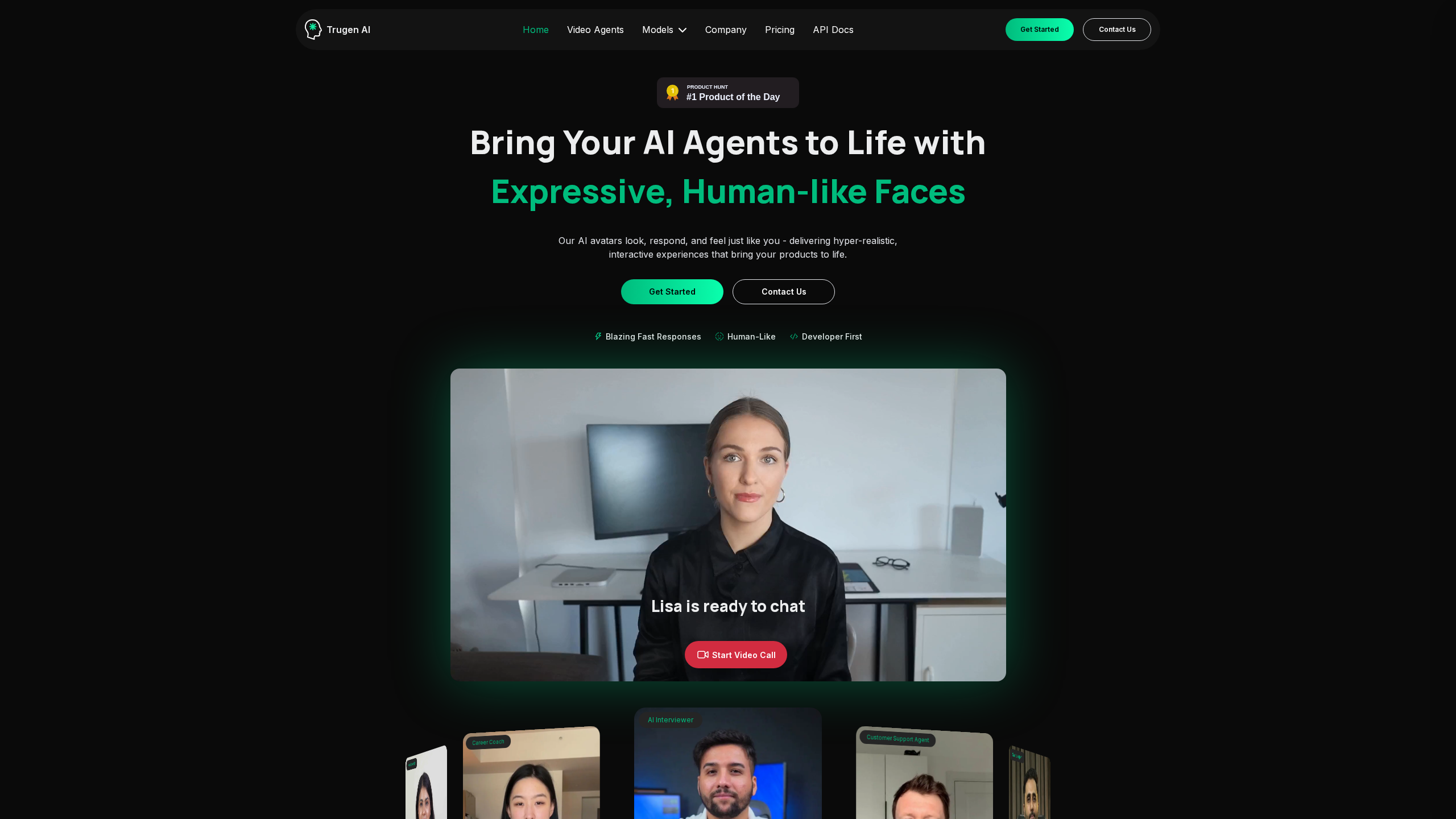 Trugen AI allows users to build conversational AI video agents, transforming chatbots and voice agents into hyper-realistic video agents that can see, hear, and act in real time. The platform is designed to deliver expressive, human-like faces and interactive experiences to bring products to life.